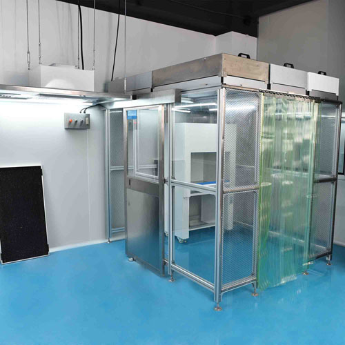 潔凈棚是一種簡易潔凈室,具備多種潔凈等級及空間搭配可以根據使用需求設計制作,因此其運用彈性大、安裝容易且施工期短。潔凈棚是一種可提供局部高潔凈環境的空氣凈化設備,既可懸掛,又可地面支撐,結構緊湊,使用方便。可以單個使用,也可多個連接組成帶狀潔凈區域。潔凈棚采用工業鋁材(或不銹鋼方通、鐵方通噴塑)作為框架,風機濾網機組(ffu)送風,四周懸掛防靜電垂簾(或有機玻璃),其內部凈化級別可達到100-10000級。適用于操作區內局部凈化級別要求高的區域。
