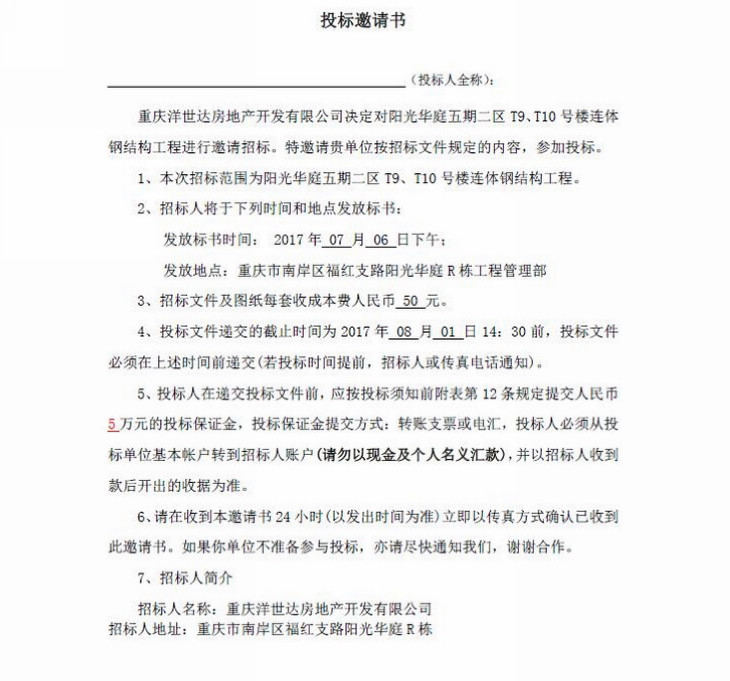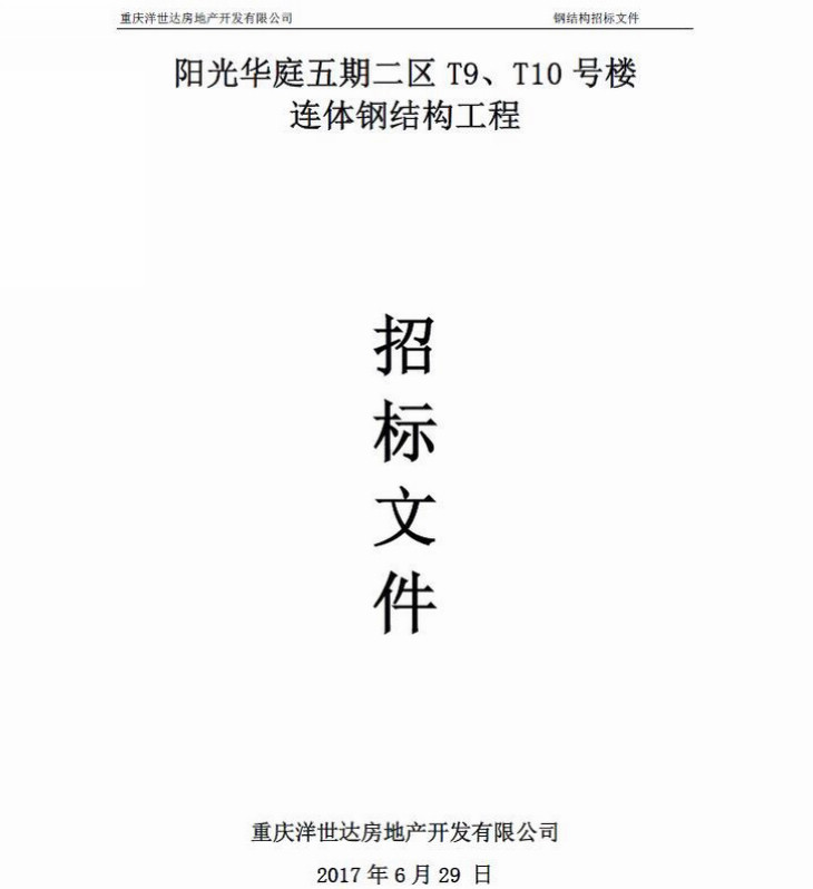 陽光華庭五期二區(qū)T9、T10號樓連體鋼結構工程招標文件