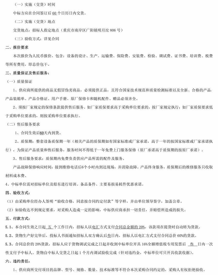 重慶市港航管理局20米工作艇發(fā)動機組招標...