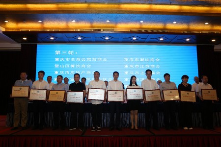 會上,市工商聯(lián)黨組副書記、副主席彭光遠宣讀了《重慶市工商聯(lián)2017年-2018年“四好”商會認定通報》,并對18家全國“四好”商會及34家市級“四好”商會獲得者進行了頒獎。房地產商會在會員單位的大力支持與共同努力下榮獲2018年度重慶“四好”商會榮譽稱號,這充分說明過去一年商會工作的開展得到認可,同時也凸顯出商會所擁有的實力和凝聚力,品牌價值和美譽度也得以展現(xiàn),商會發(fā)展的航船正大江奔流,踏浪前行。隨后,渝北區(qū)工商聯(lián)、中共龍?zhí)舵?zhèn)黨委、重慶市餐飲商會等8家單位分別作了大會交流發(fā)言。