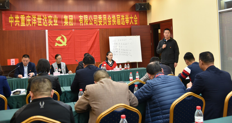 洋世達集團黨委于2019年11月8日,在集團公司一樓會議室召開全體黨員大會。會議由黨委副書記董進飛同志主持,集團公司董事長楊勇同志及南坪鎮黨政辦祝芳芳同志蒞臨大會并發言。換屆選舉大會按照上級黨委的要求,由上屆黨委書記何長君同志做工作報告,采用無記名投票的方式進行選舉,產生了新一屆黨委委員。本屆黨委委員由趙全林、董進飛、朱莎、楊鵬、劉君梅五位同志組成。