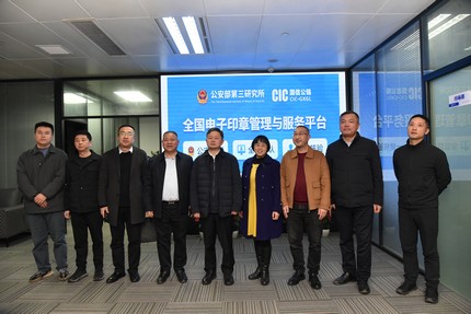 最后,調研組一行來到重慶國信公鏈印章有限公司走訪。作為公安部第三研究所及CIC國信公鏈研究院全國電子印章管理與服務平臺重慶市平臺,公司為重慶市內政務部門、企事業單位、社會組織及個人用戶提供電子印章權威備案、簽章、查詢、核驗等公共服務,搭建并實現了“公安備案、全國互認、一鍵核驗”的電子印章應用服務體系,為減輕企業運營成本、打破電子印章區域應用壁壘、助推數字經濟產業化發展做出了積極貢獻。