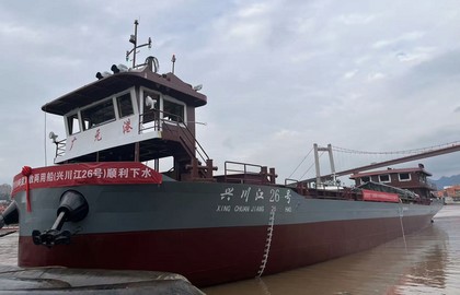 2025年9月29日,由重慶帝力游艇制造有限公司為廣元港集團(tuán)承建的3艘1000噸級(jí)集散兩用貨船,第一艘“興川江26號(hào)”在我司生產(chǎn)基地順利下水。廣元港集團(tuán)、監(jiān)理單位等相關(guān)人員出席。